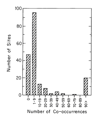 of the sites analyzed experienced fewer than 10 co-occurrences