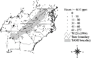 The W126 ozone levels predicted at