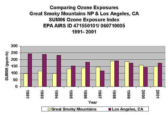 than 180,000 ppb-hours, exceeded the Smokies. Over the 11-year
