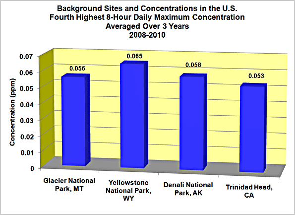 Following Sites? The highest 8-hour daily maximum concentration occurred for most of the sites during the spring months. Lefohn et al. (2001) and Oltmans et al. (2008) discuss the variability of background ozone. The ozone monitoring site at Trinidad Head, CA is a site that many times meets the criteria for identifying surface ozone policy-relevant background levels. For more information about policy-relevant background, please click here. An Internet-based slide presentation is available for purposes of previewing the Lefohn et al. (2001) paper. For more information about background ozone and ozone trends, please visit our publication web page. References Lefohn A. S., Oltmans S. J. , Dann T. , and Singh H. B. (2001) Present-day variability of background ozone in the lower troposphere. J. Geophys. Res., 106 (D9):9945-9958. Oltmans S. J., Lefohn A. S., Harris J. M., and Shadwick D. (2008) Background ozone levels of air entering the west coast of the U.S. and assessment of longer-term changes. Atmospheric Environment. 42:6020-6038. |